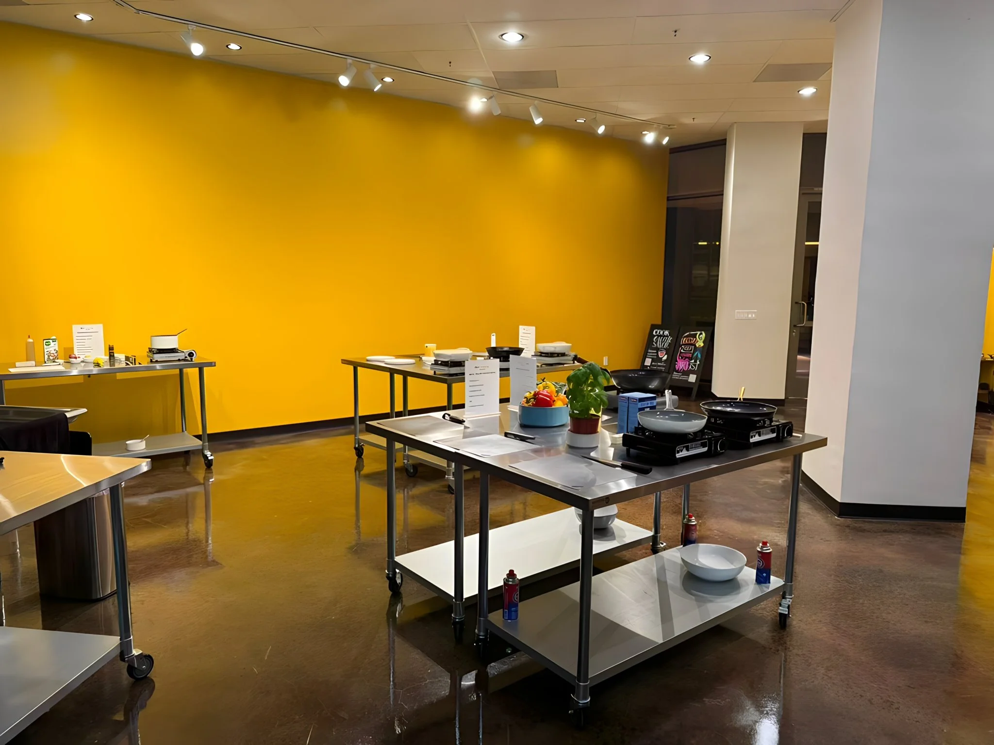 On one side, you’ll find a state-of-the-art, multi-purpose studio that effortlessly transforms from a culinary academy to an art studio to a wellness haven. With thousands of square feet, flexible layouts, and movable furniture, the space adapts to every experience — from hands-on cooking classes to painting sessions and mindfulness workshops.